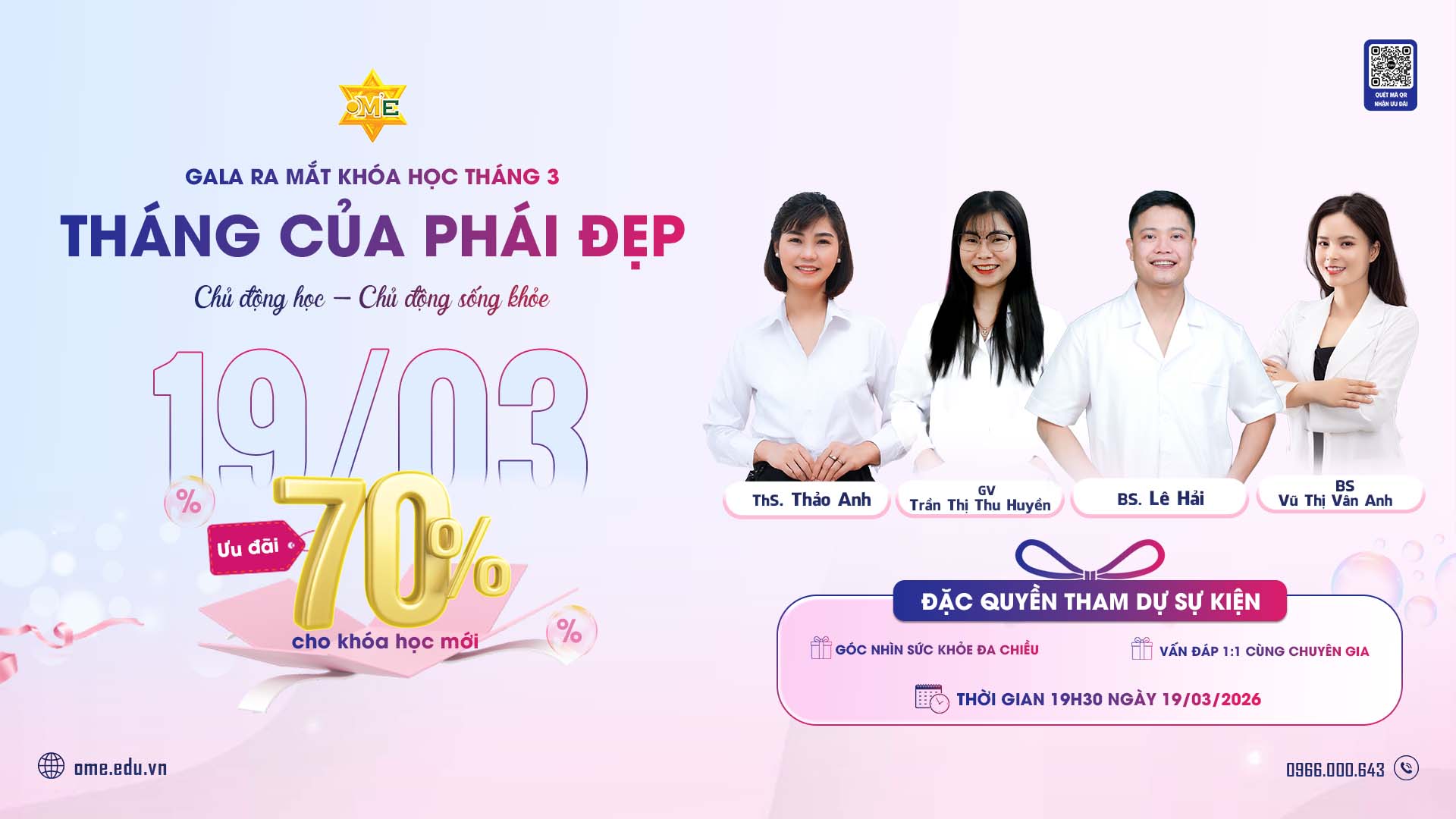Nhằm đồng hành cùng phụ nữ trên hành trình đó, OM’E Việt Nam tổ chức Livestream Ra Mắt Khóa Học Tháng 3 với chủ đề “Tháng của Phái đẹp: Chủ động học – Chủ động sống khỏe”. Chương trình không chỉ là dịp giới thiệu các khóa học mới, mà còn là không gian chia sẻ kiến thức chuyên môn, giúp mỗi người hiểu rõ hơn về cơ thể, cảm xúc và cách chăm sóc bản thân một cách chủ động, bền vững.